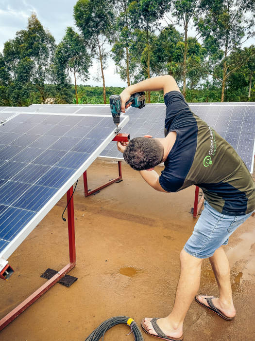 Die Kosten für Material und Aufbau wurden vollständig von unserem Grüne Leuchte Team übernommen. Die Mitarbeiter vor Ort haben dabei das Team der Grünen Leuchte kräftig unterstützt und erhielten gleichzeitig von unseren Experten eine Einweisung in die Handhabung der PV-Anlage. Die Wartung übernimmt ein Unternehmen vor Ort, wobei auch dabei unser Team aus Deutschland einmal im Jahr zur Unterstützung anreist.